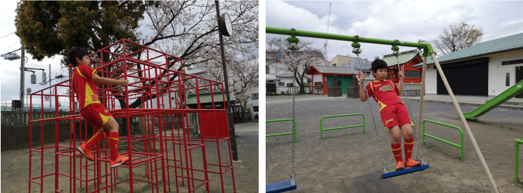 公園の遊具の中で、運動能力を伸ばすためにオススメなのがジャングルジム。ジャングルジムの上り下りには、両手・両足を使うので、全身の筋肉を鍛えることにつながります。また、バランス感覚や空間認識能力も養えるものです。高学年になるとゲーム的な要素もプラスしてジャングルジムで遊ぶようなりますよね。いろいろ考えながら身体全身を動かせるので、高学年でもとてもいい運動に。