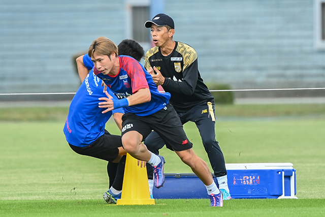 今シーズンの開幕前には帝京大学スポーツ医科学センターにて「筋力」「持久力」「動作分析」のテストを実施。動作分析テストでは、サッカー選手に多いケガのデータなどを考慮した基準値(ケガのリスクが高まる境界値)が設定され、選手個々の特徴を可視化した。これらの情報を基に早川コーチ等は、ケガの予防を目的としたトレーニングセッションを設けている。