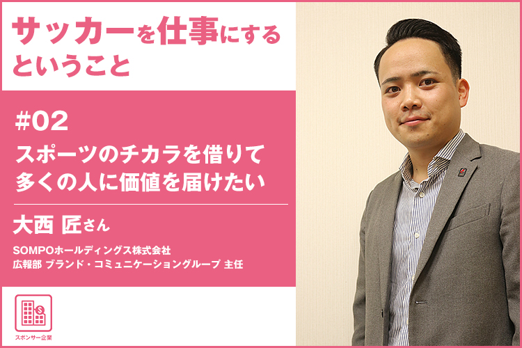 サッカービジネスの最前線で働く人々を特集する恒例企画。社会価値創出のためのコンテンツを提供するなどを行っているSOMPOホールディングス株式会社の大西 匠さんにお話を伺った。