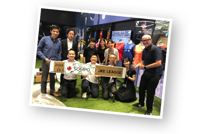 SOMPO WEリーグのタイトルロゴの看板に、各クラブの代表選手からサインを頂きました。タイトルパートナーとしてリーグを盛り上げるために、クラブと協力して地域に働きかけ、より多くの方にスタジアムに足を運んでもらえる施策をしていきたいです。