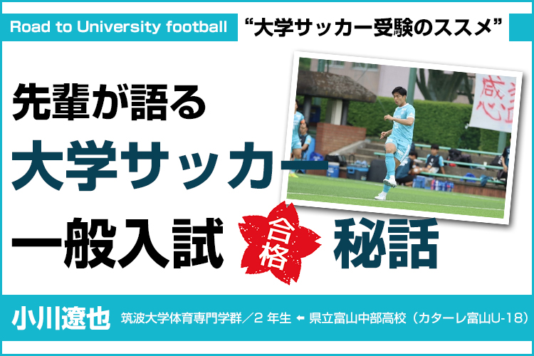 大学でサッカーをするにはどんな入試方法があるだろうか。一般的には「サッカー推薦」「AO入試」「一般入試」の3つに分けられる。今回は一般入試で筑波大学に合格し蹴球部で活躍する先輩をクローズアップする。難関国立大でありながら、大学サッカーの最高峰リーグ関東リーグ1部優勝16回の超名門は、三笘薫をはじめ数多くのプロ選手を輩出してきた。勉学とサッカーの両立を高いレベルで求められる難関入試を突破した要因について聞いた。