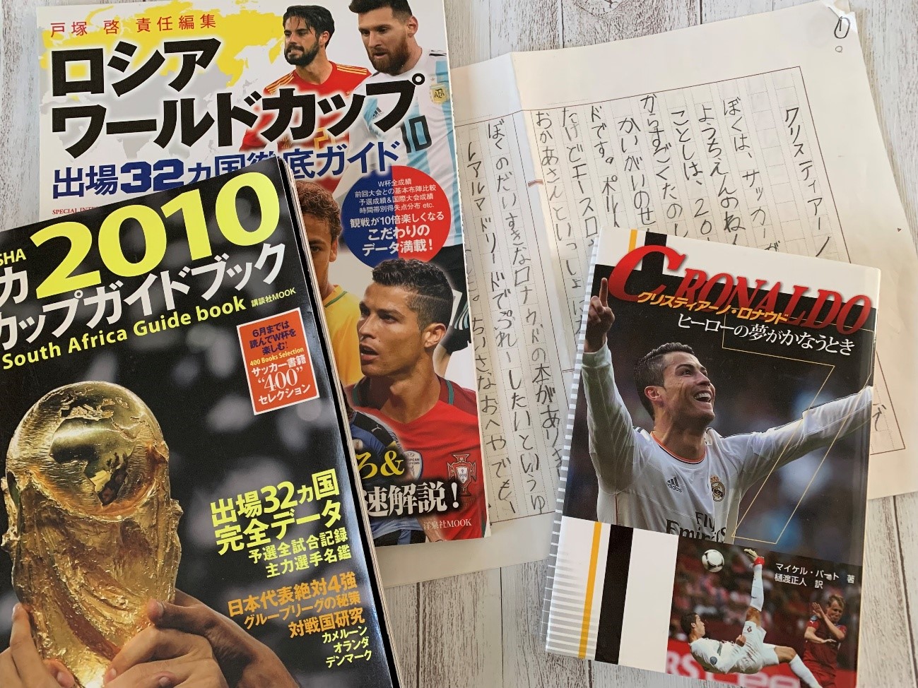 息子が小1の時にワールドカップがあったので、夏休みの課題でCR7の本を読書感想文にしたり、貯金箱でトロフィーを作ったり、工作で出場代表国のユニフォームを作ったこともあります。どれも大切な思い出です。