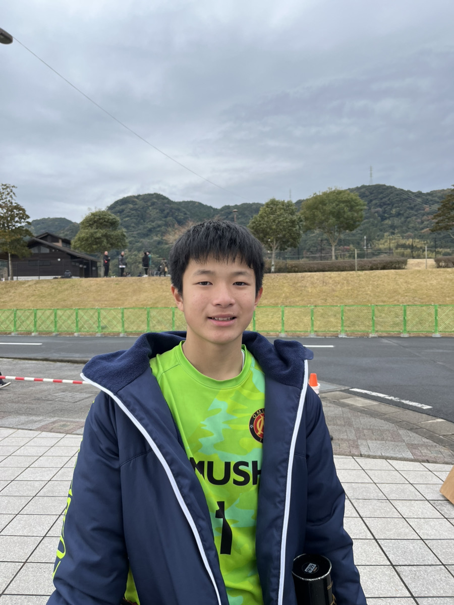 「県大会までの練習がかなりきつかったのですが、全国大会に出場することができて嬉しいです。その厳しい練習を乗り切ることができたのは、お母さんやお父さんが送迎などでサポートをしてくれたおかげなので、感謝を伝えたいです。日本代表の鈴木彩艶選手(パルマ所属)を参考にして、ロングキックやセービングの練習に力を入れてきました。将来は彼のように日本を代表できるようなプロサッカー選手になりたいです」