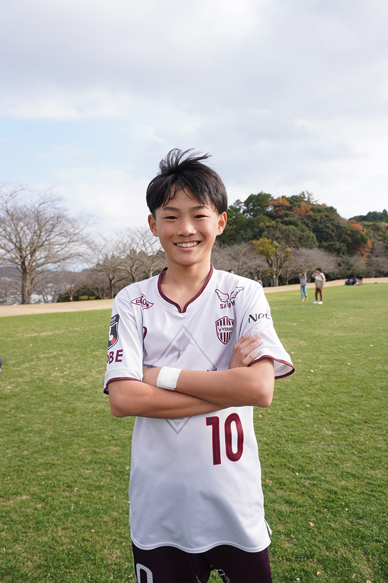 「千葉県の代表として、他のチームの想いも背負って全国大会に出られたことを誇りに思います。もともと守備が苦手だったのですが、監督やコーチに教わって、5年生、6年生になるにつれて強度が上がっていった実感があります。試合や練習の送り迎えや、食事にも気を遣ってくれた両親に感謝を伝えたいですね。バロンドール(世界年間最優秀選手)を取ることが将来の目標なので、結果で恩返しできるように頑張りたいです!」