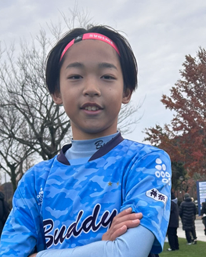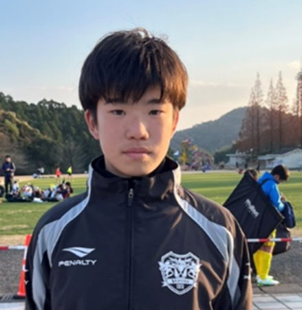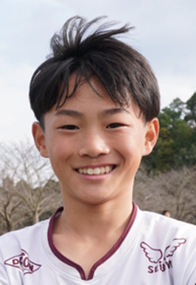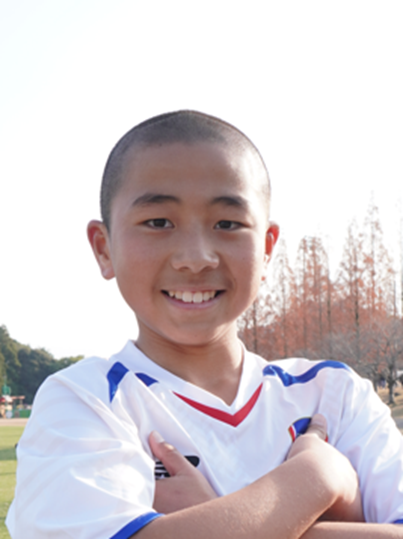「チームとして勝ち切るということを目標にしてきたので、全国大会に出ることができてとても嬉しいです。ネイマール選手(ブラジル代表、アル・ヒラル所属)が憧れなのですが、同じ左サイドやトップ下として、ドリブルやシュートでのチャンスメイクでチームに貢献できるプレーが得意です。これまで家族みんなで試合の応援をしてくれていて、今回の大会にも来てくれました。家族の期待に応えられるように精一杯これからも努力して、夢であるプロサッカー選手になりたいです!」