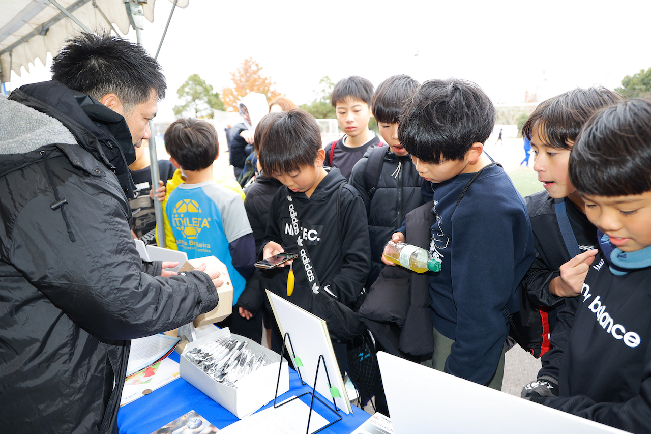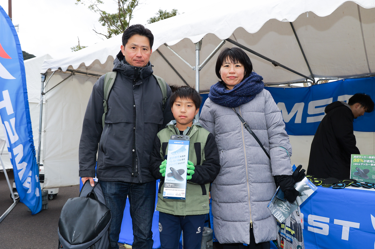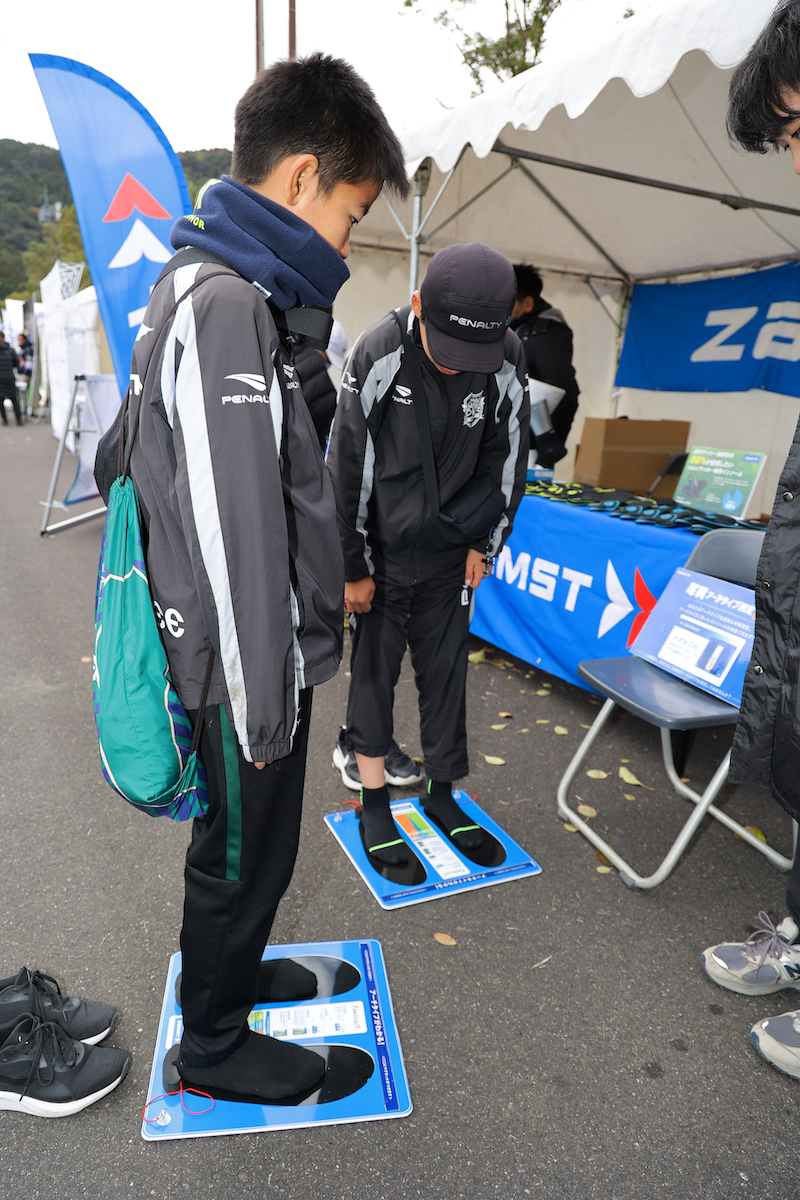 ブースには大会に参加したチームの選手や地元の子どもたち、保護者が多く訪れ、自分の足型を測り、インソールを試すと驚きの声が上がりました。測定を担当したザムストのスタッフに話を聞くと、「全国大会に出場する選手の親御さんということで、コンディショニングギアに対する意識が高く、サッカー専用のインソールについて知っている方が多くいらっしゃいました」と感心した様子。普段から身体のケアやコンディニングを意識して取り組んでいるからこそ、全国大会に出場するような選手に成長したのかもしれません。