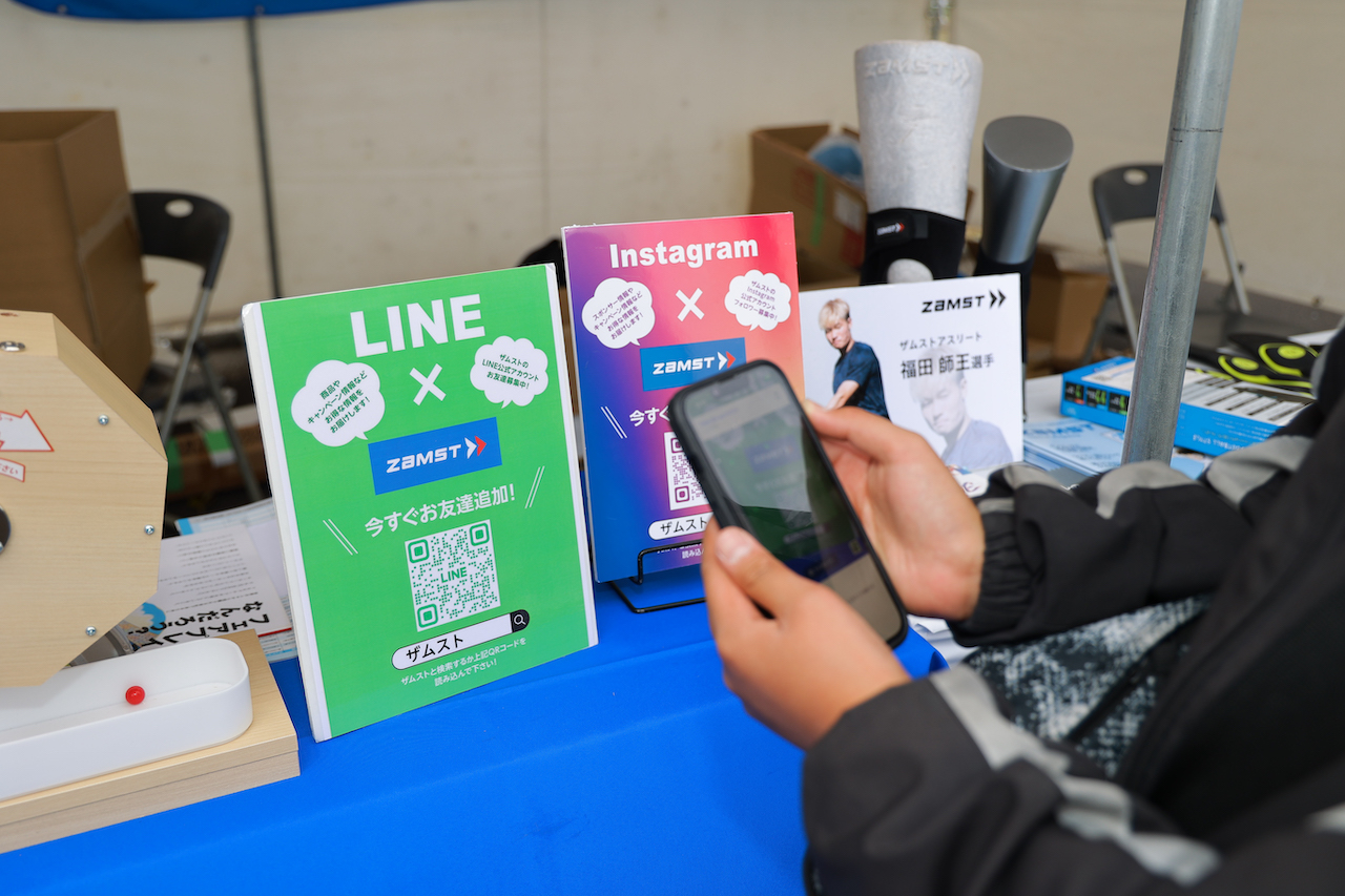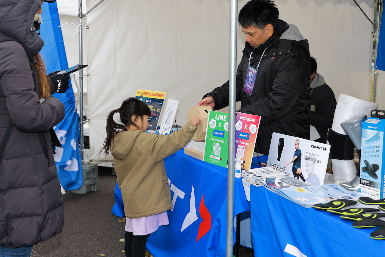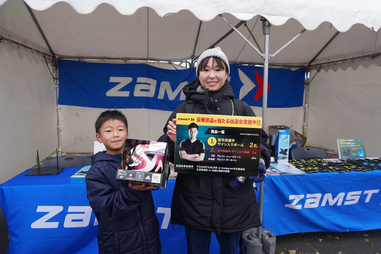 ブースでは足型測定の他にもザムストのLINEやインスタを登録することで参加できるガラガラ抽選会を実施。ザムスト契約選手の宮市亮選手のサイン入りボールが当たる豪華景品が用意され、多くのサッカーファミリーが賑わいました。大会に出場している選手の応援に訪れていた家族は、インソールの重要性を知り、「ぜひ今後も兄弟で試してみます!」と語っていました。