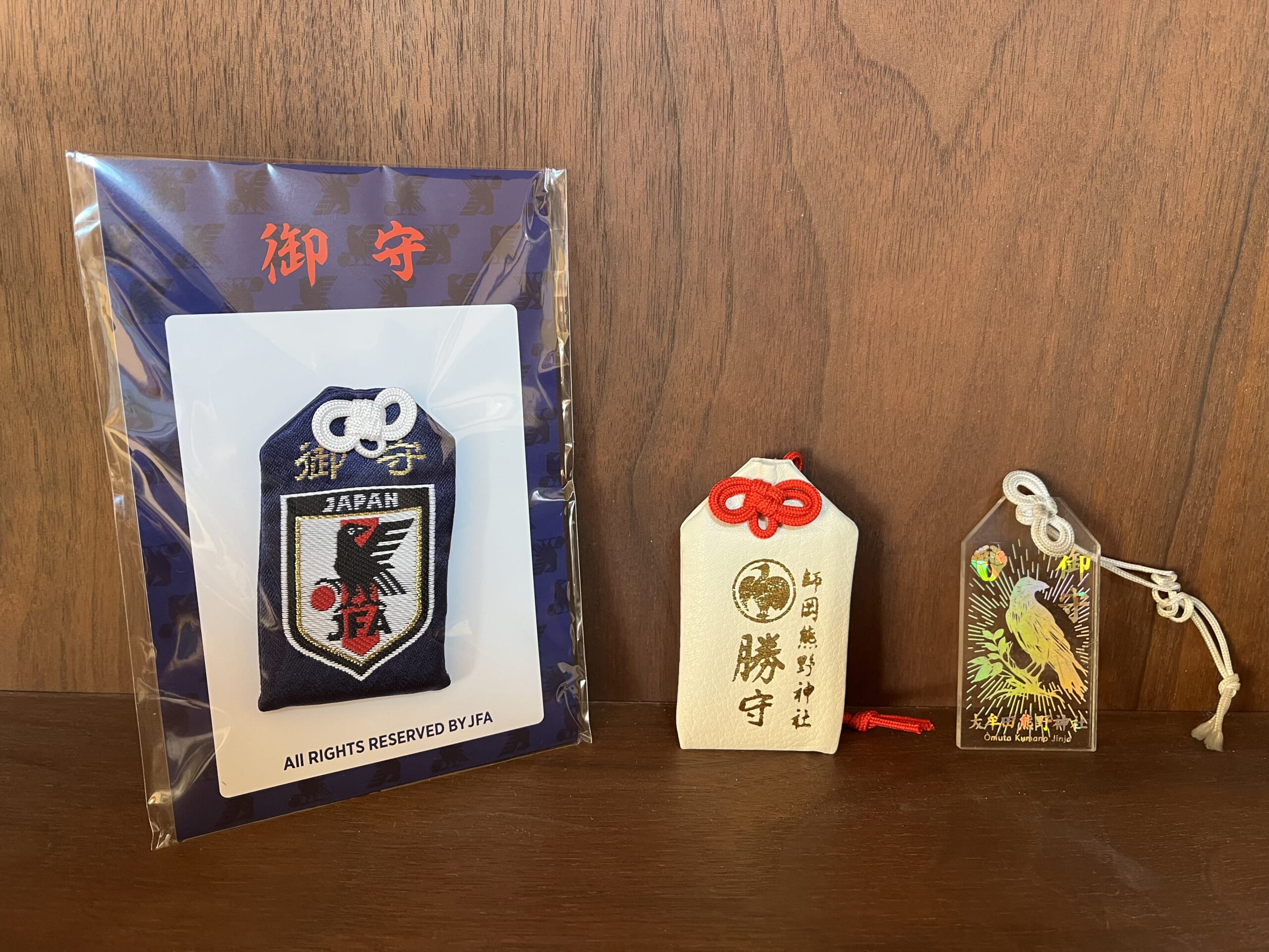 そんな私も、昨年初めてネットでお守りを購入してみました(笑)。福岡県の大牟田熊野神社から出ている“ヤタガラス導き守り”です。透明な素材に箔を捺していて、キラキラしていて素敵なのです。今は押し色バージョンが出まして、ひもの色が選べるので、チームカラーに合わせることができるのがサカママ心をくすぐられますね(笑)。