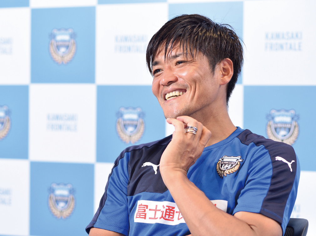 170㎝と小柄ながらピッチの最前線で躍動し、2013年に初のJ1得点王に就いて以来、リーグ史上初となる同タイトルを3年連続で獲得。今年7月には、それまでのJ1リーグ歴代最多タイの157得点を更新し、前人未踏の領域に突入している。34歳、3児のパパにして全盛期、それが大久保嘉人だ。