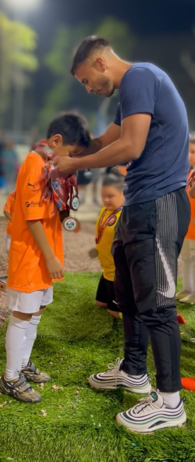 練習でも試合でも、子どもたちを後押しするアツい声かけが止まることはありません。競り合う場面では「絶対に奪い取れ!」「絶対に取られるな!」「 ¡Eso!(スペイン語でそれだ!! いけ!! という意味)」と、まるで自分がプレーをしているかのような気持ちの入りよう。レフリーがあからさまなミスジャッジをしようものなら猛抗議、今までこのコーチに対する何枚のイエローカードを見てきたことか。