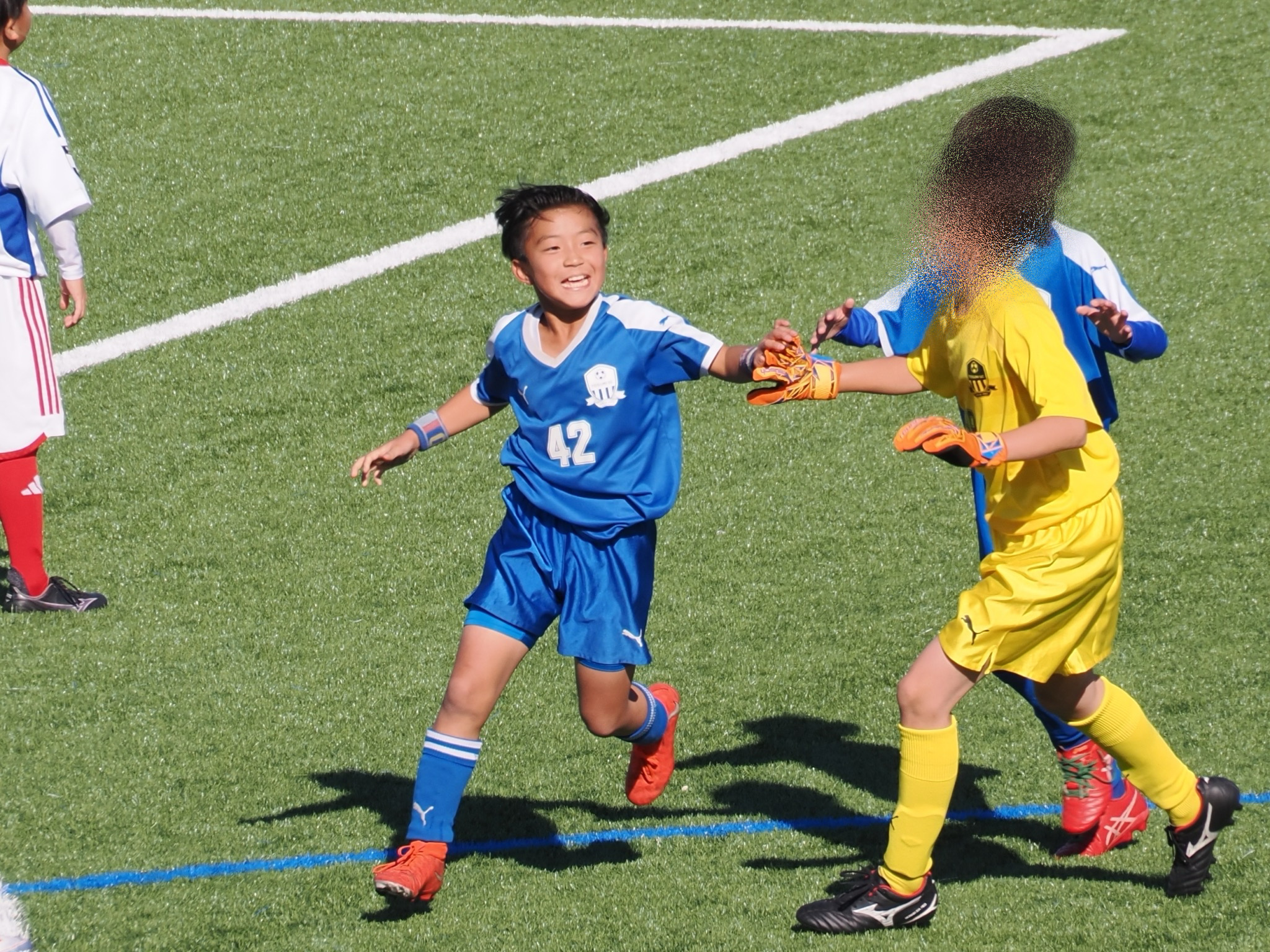 次男がゴールを決めた後、ベンチに向かって何かしているのを見ましたが、保護者のスタンドからは遠かったので何をしていたのか分からず。