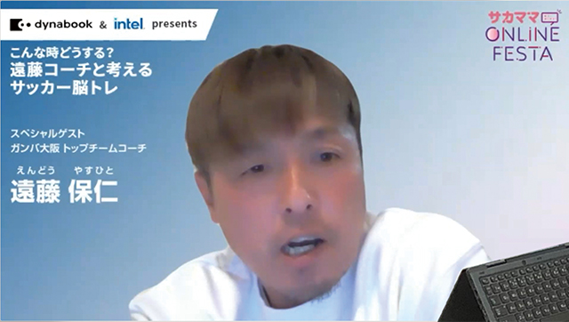 元サッカー日本代表で、現在ガンバ大阪トップチームコーチを務める遠藤保仁さんがオンラインフェスタに初登場。PC 版サッカーノートを活用しながら、現役時代のプレーを解説してくれました。ここではその一部と、サッカージュニアへのアドバイスをご紹介!