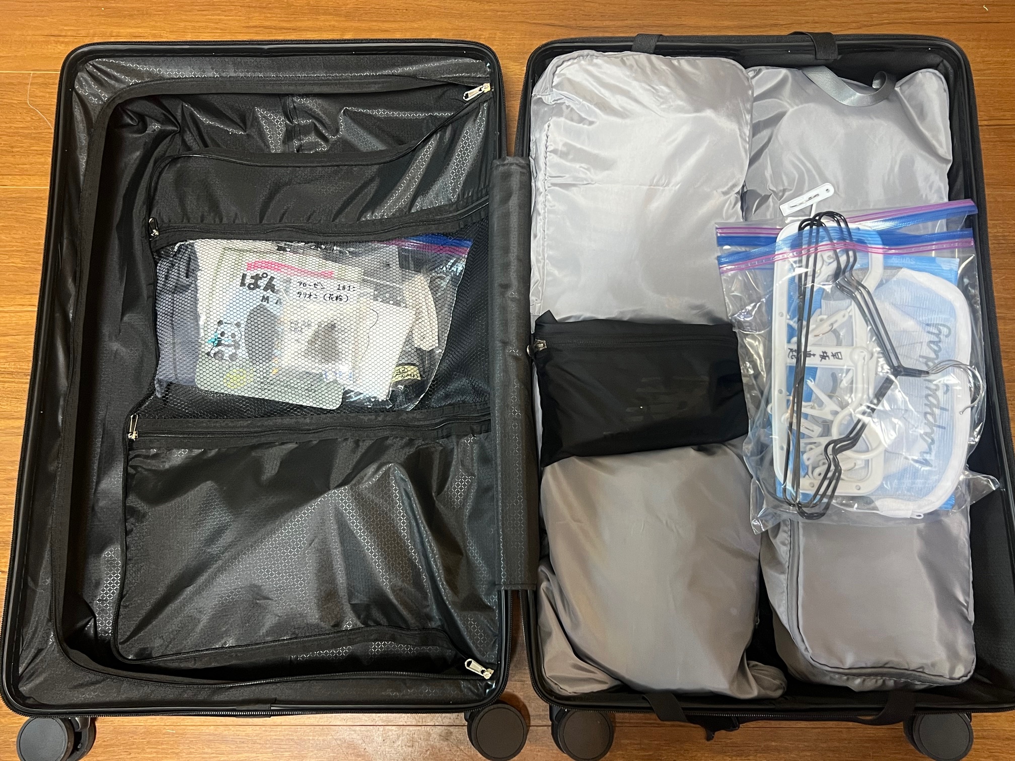 背番号入りのリュックも届き、当日はユニフォームや練習着などたくさん用意していただきましたが、全部入れてもスーツケースの片側はほぼ空いている状態でした。