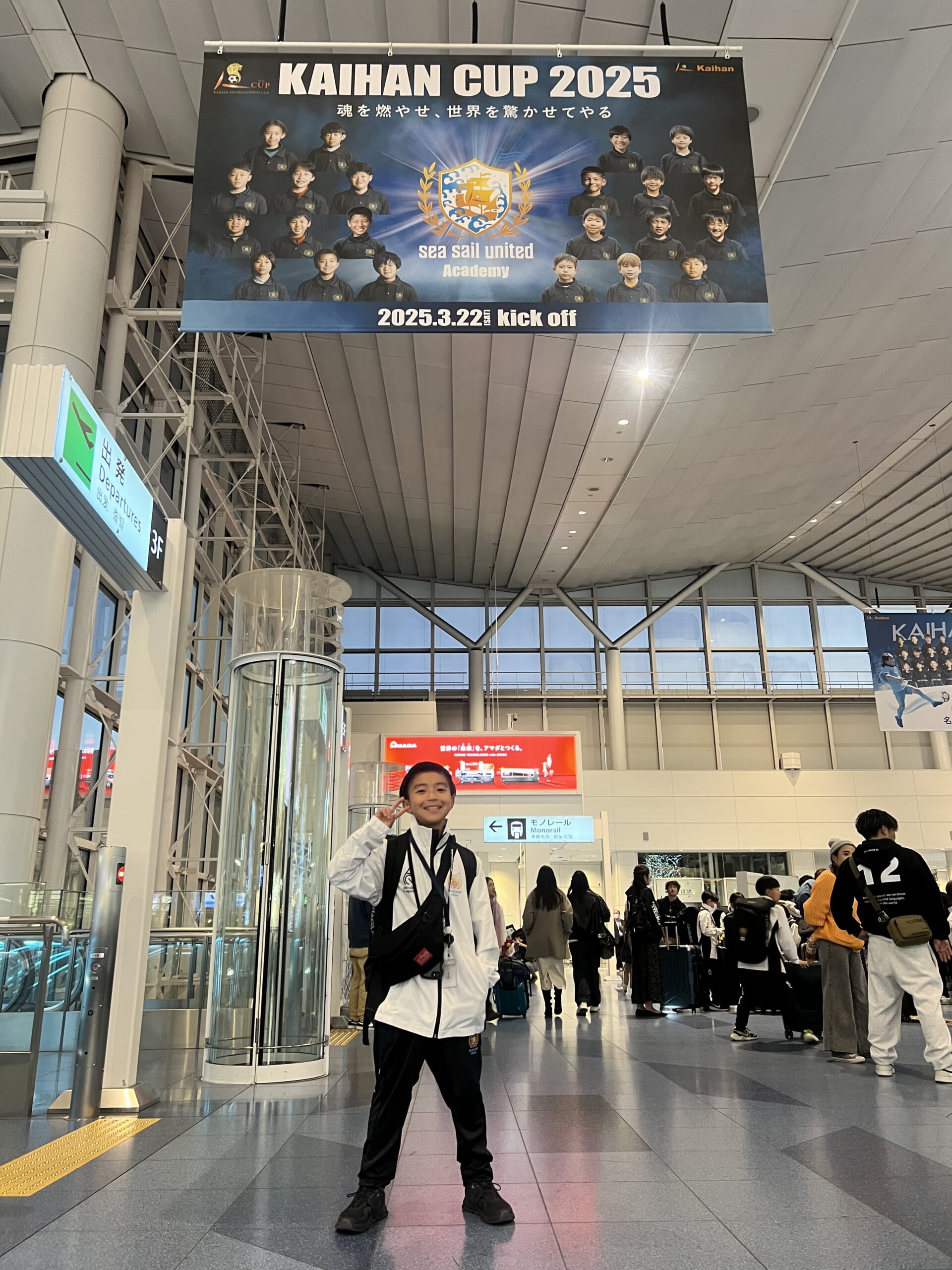 さらに、羽田空港の出発ロビーには「KAIHAN CUP」の大きな広告が掲げられ、驚きと共にプロジェクトの大きさを実感。