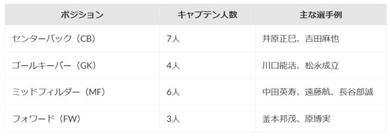 出典)「サッカー日本代表歴代キャプテン一覧|1968年から2024年までの名キャプテンたちの軌跡」