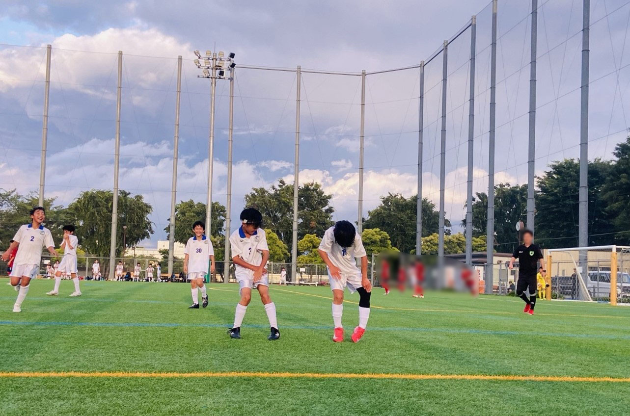 仲間のシュートが決まり、一緒にゴールパフォーマンス