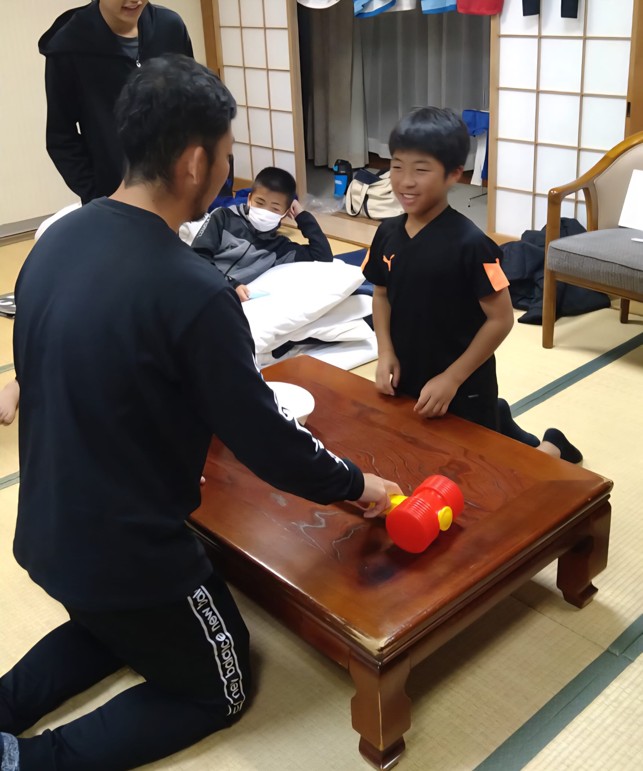 ミーティング後は、コーチ主催のお楽しみ時間でゲームや一発芸などをみんなで行い、お互いの普段と違う一面が見れたりとチームの親睦も深まりました。ゲームの中でも瞬発力を鍛えるような内容、一発芸は最初は困惑していた子も、回を重ねる毎に慣れてきたのか一人ずつ立派にやり終えてる姿がありました笑。