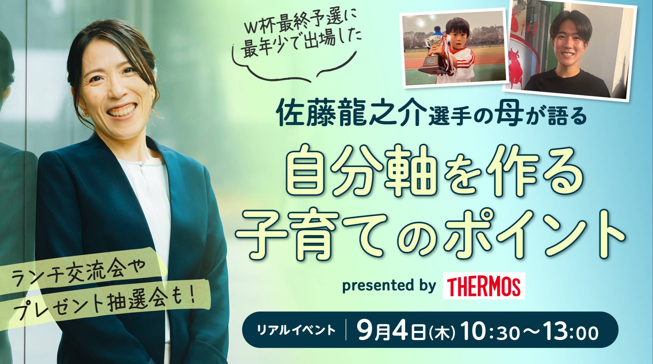 今回は、元サッカー日本代表の柿谷曜一朗さん、“W杯最終予選に最年少で出場した”佐藤龍之介選手の母 佐藤希代子さんがサカママイベントのゲストに登場します!