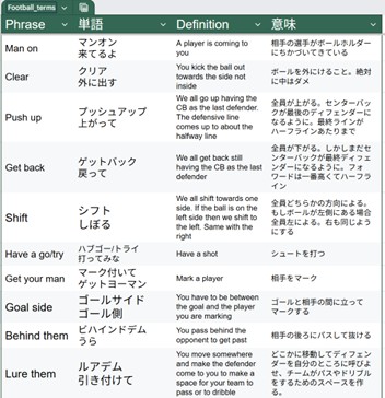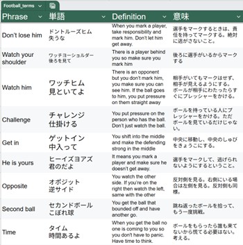 本当のところ、一緒にサッカーをしていれば、細かい言葉の齟齬があっても指示や意思が通じることのほうが多いです。けれど、こうした用語集があっても損はないですし、少しはみんなの役に立っていればいいなと思います。