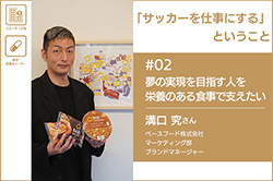 ベースフード株式会社 マーケティング部 ブランドマネージャー 溝口 究さんに「現職への経緯」「BASE UP PROJECT」「Jリーグとのつながり」などサッカーと食品・医療品メーカー業界の関わりについてなどお話を伺った。