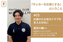 株式会社フットボールクラブ 水戸ホーリーホック ファンコネクト部 チケット・サポーターズクラブ担当 冨田大輔さんに「進路を決めた経緯」「現職への経緯」「サッカー界への貢献」などサッカーとクラブを支える側との関わりについてなどお話を伺った。