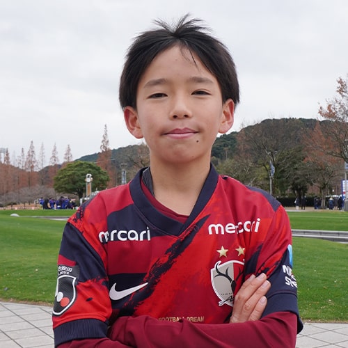 「キックの飛ぶ距離には自分でも自信がありますし、対人の強さもチームの中でちゃんと練習してきました。最近は、自分でもどんどん強くなっていると感じています。対人で大事にしているのは、まず相手の選択肢を一つにさせること。中央を切って大げさに外に追い込んで、そこから自分の長い足を使ってボールを奪います。相手を誘いながら限定して取る、というイメージです。今日の試合でも、ボールを出されても長い足を生かしてしっかり対応できたと思います。全国大会を経験して、自分に足りないこともたくさん分かりました。人生の中でもすごく大きな経験になったので、これからは中学進学に向けて、もっとちゃんと練習していきたいです。中学でもこのままフェルボールでサッカーを続けます。親には、毎日サポートしてもらって、金銭面でもお父さんたちが仕事を頑張ってくれているので、本当に感謝しています。その『ありがとう』の気持ちを、サッカーで表現したいと思っています。将来の一番の目標は、プロサッカー選手になることです」