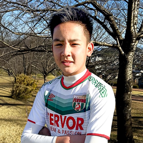 「チームの中での役割は、点を取ることだと思っています。ただ、全国大会では普段決められるような場面で決めきれず、悔しさも感じています。体の大きさを生かして、どこからでもシュートを打てるところが自分の特長で、最近はヘディングで点を取れるようになってきました。全国では強さ以上に、決定力の大切さを感じています。これまで送り迎えをしてくれたり、体調管理に気を配ってくれた両親に感謝しながらプレーしたいと思います」