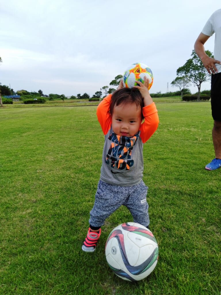 言葉の理解も進み、身体もたくさん動かせるようになった長男。この頃からパパによるサッカー指導が始まりました。