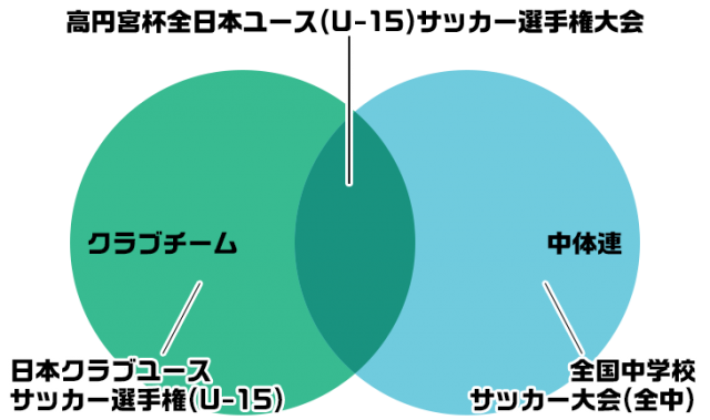 中体連と、クラブチームは所属する組織が異なり、それぞれが主催する大会に参加します。全国規模の大会を例に挙げると、クラブチームは夏に開催される「日本クラブユースサッカー選手権(U-15)」(主催:日本クラブユースサッカー連盟)、中体連は「全国中学校サッカー大会(全中)」(主催:日本中学校体育連盟など)が行なわれ、“それぞれ”の頂点を競います。そしてこの2つの環境が、同じ条件で出場できるのが「高円宮杯全日本ユース(U-15)サッカー選手権大会」です。まさに中学年代サッカーの集大成とも呼べる同大会ですが、中体連の優勝は91年に東海大学第一中学校が優勝した第3回大会まで遡らなくてはいけません。クラブチームは92年の第4回大会から2017年度の第29回大会まで、実に25年間も優勝を続けていることになります。