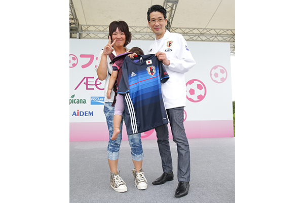 ○×クイズの全問正解者には、なんと日本代表のレプリカユニフォームがプレゼントされました。