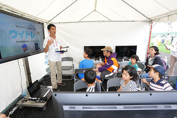 福島に拠点をもつサッカースクールや、フェスタ初となるウイトレ親子サッカースクールなど5つのサッカースクール体験を行いました。