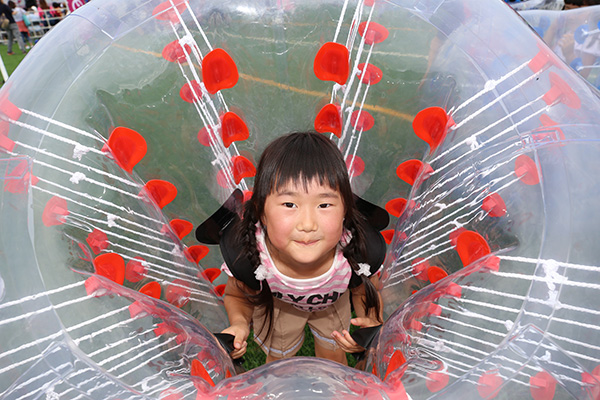 毎回大人気のバブルサッカー。キッズたちはお互いにぶつかったり転がりながらも、楽しそうにボールを追いかけていました。