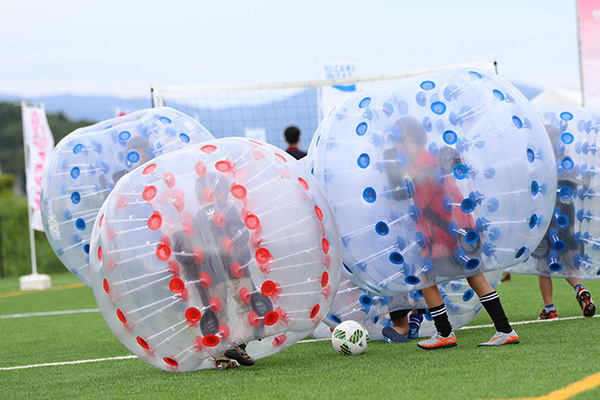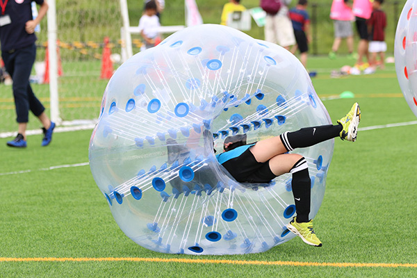 初めて見るバブルサッカーボールにドキドキしながらプレー。