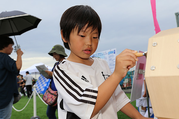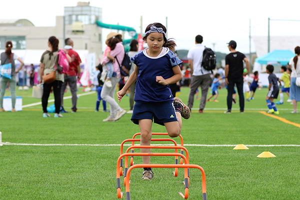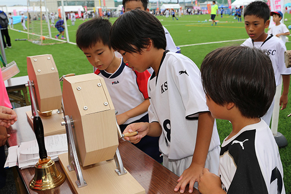 シュートやドリブルの計測ができるとあり、何度も挑戦して記録を更新するキッズも大勢いました。