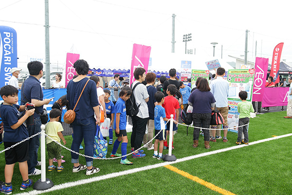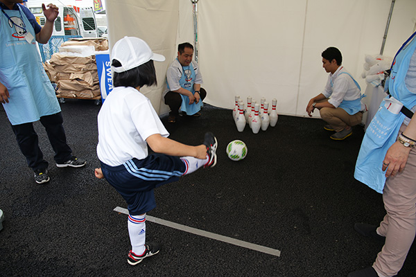 プレゼント付きのサッカーボーリングが楽しめたイオンブースは長蛇の列に。