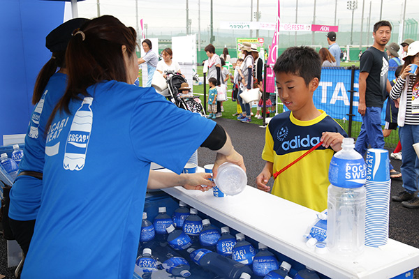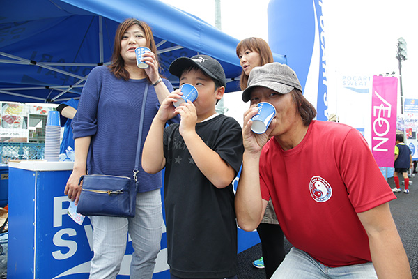 会場の2カ所にポカリスエットの給水ブースを設置。絶えることなく人が訪れ、乾いた喉を潤していました。