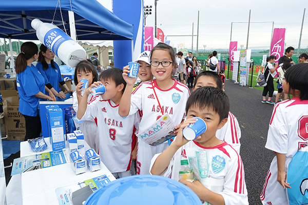 元Jリーガーの保坂信之氏が指導してくれた親子サッカースクール。休憩時間には朝食や栄養に関するセミナーも行われました。