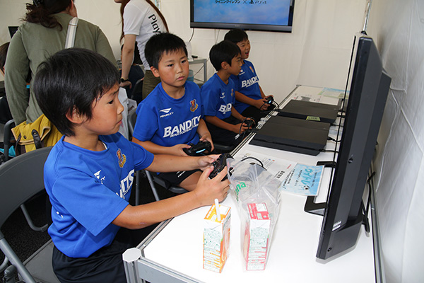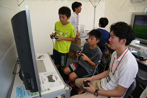 話題の「ウイトレ」を体験できたのがこちら。第1部はプレイステーションブースでウイイレを体験し、第2部ではトレーニングを行いました。