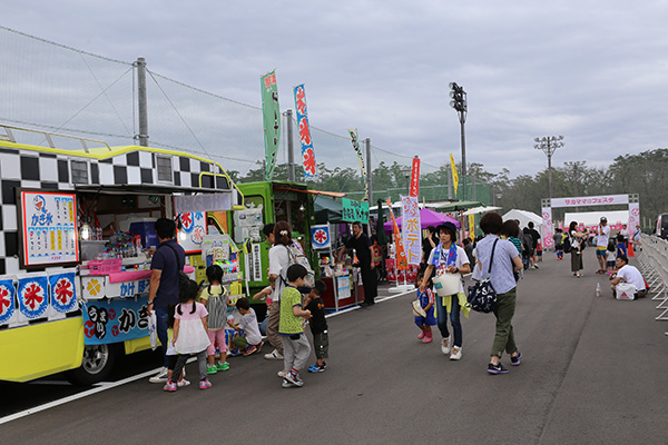 入場ゲート付近にフードワゴンがズラリ。福島グルメをはじめ、さまざまな味が楽しめました。