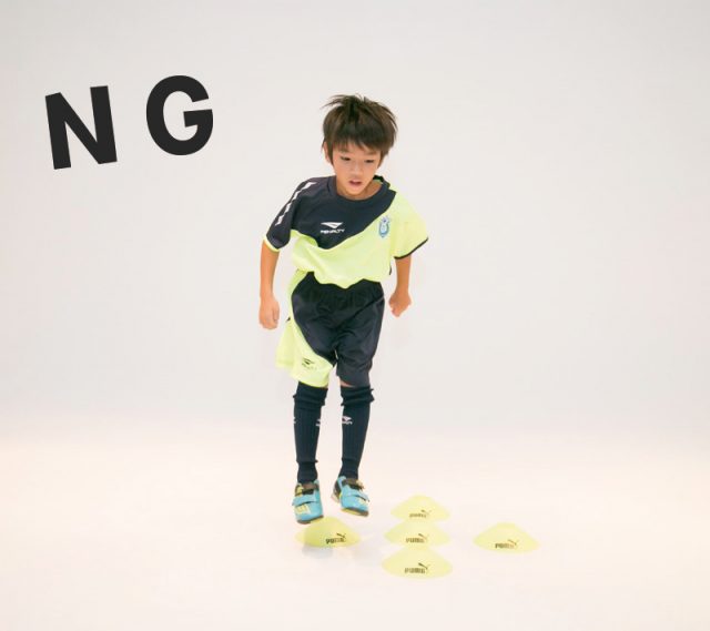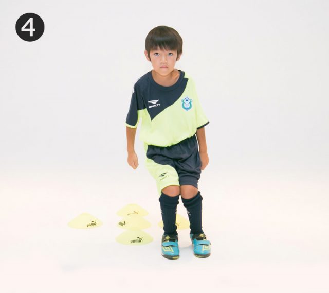 ②左右にジャンプする マーカーを踏まないように左右にジャンプ。