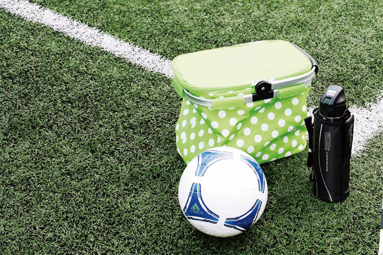 コンパクトになるので合宿でも試合でもチームの誰かが一つもっていき、小さなタオルを試合にでる人数分用意。試合前に氷水でひたひたにしたタオルを首元にあてて使っています。