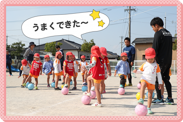 普段、あまり外で遊んでいない園児も、コーチたちの熱心な指導のおかげで、今日はボールを使って楽しそうに体を動かしていたのが印象的でした。この取り組みをきっかけに、外遊びも好きになってくれたらと思います。
