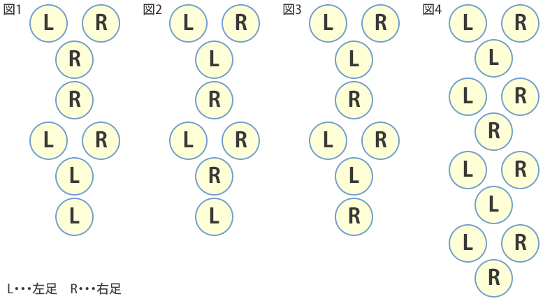 運動が苦手な子、走るのが遅い子には 共通点があるのですが、その一つが足の着き方が悪いということです。 ケンケンパをする事で正しい足の着き方が身に付き、地面を正しく蹴れるようになると、足が速くなったりスポーツ動作が良くなってきます。 まずは一度、何も無いところでもいいですし、今はリングなども売っていますので下記の図を参考に楽しみながらケンケンパをしてみてください。