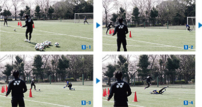 今回は実戦を意識してバリエーションのあるシュートストップ&一対一の練習を紹介。