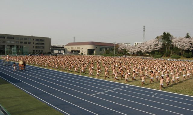 男子学生が学ぶ大学伝統の応援スタイル『エッサッサ』。月明かりに獅子が月に向かって咆哮する様子を表現したもの…らしいですが、一度やるとクセになりますよ!