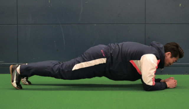 うつ伏せになり、両腕と両足で体を支える。体が一直線になるようにキープする。