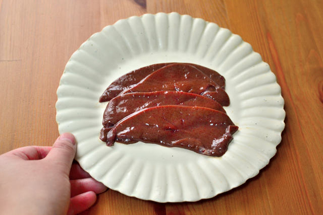 - 血抜き:食べやすい大きさに切って、流水で表面の汚れや血を洗い流す(薄く切るとさらに食べやすくなります)