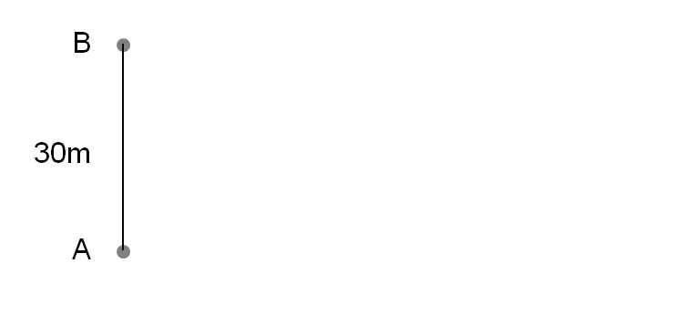 タッチラインの一部になる線を引き、A地点から30メートルの位置に印、マーキングします(B地点)。