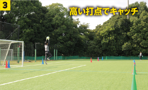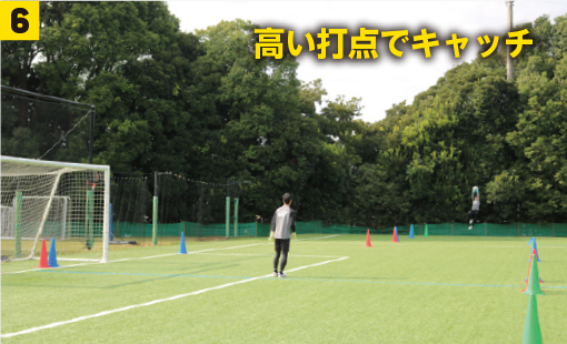 縦からのボールをジャンプキャッチ。