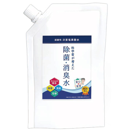 次亜塩素酸水は、厚生労働省から食品への殺菌料として認められている高い除菌・ウイルス除去の効力を持つ物質。体への影響が少なく、濃度を調整しても除菌・消臭作用を発揮します。